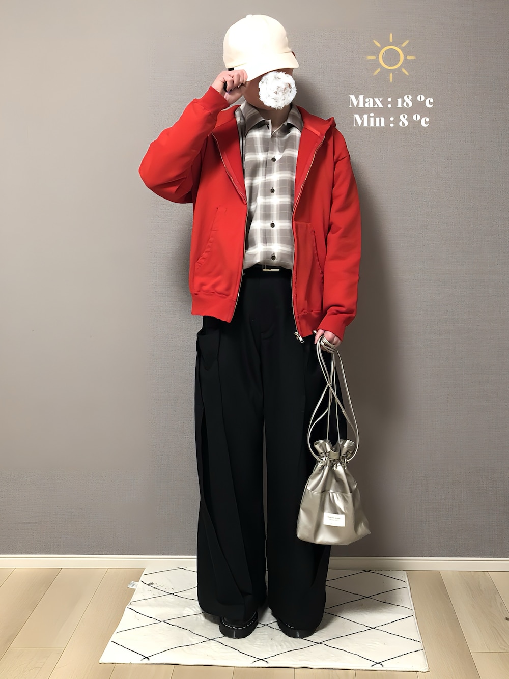 〜コーデ日記45日目〜 ご覧いただきありがとうございます! 赤が映える春のお出かけコーデ🌸 キレイめなアイテムを使いつつ、赤パーカーでラフ感強めに組んでます🫠