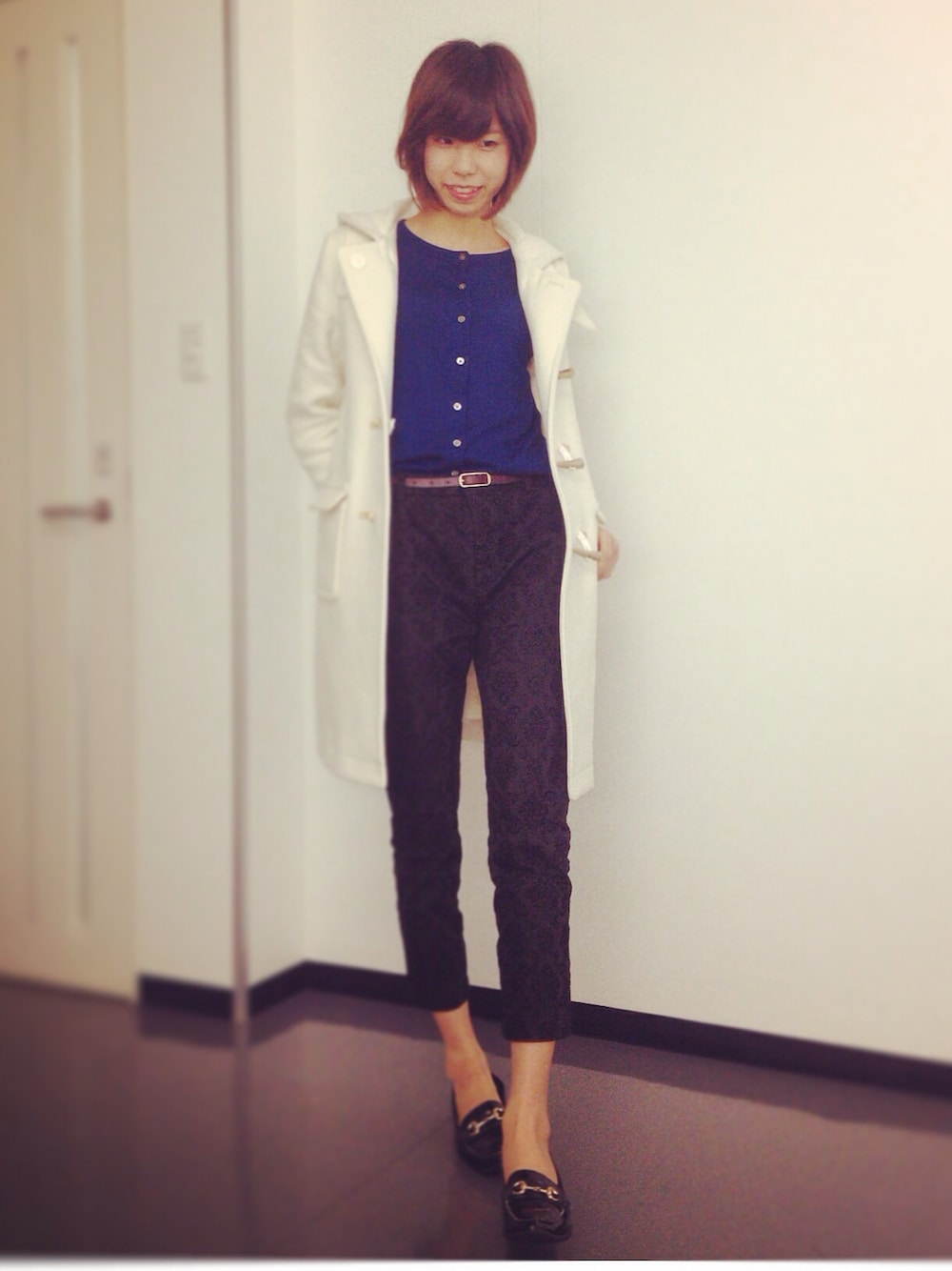 このカーディガンのブルーの色味がとってもキレイので、モノトーンに合わせて引き立てました◎ ブルー×ブラウンの組み合わせが大好きなので、モカ色のベルトでアクセントを🐻💙 このパンツ、見えにくいのですが柄がすごくかわいいんです!ぜひ小窓をご覧ください。シンプルなコーデもたちまち華やかにしてくれます!