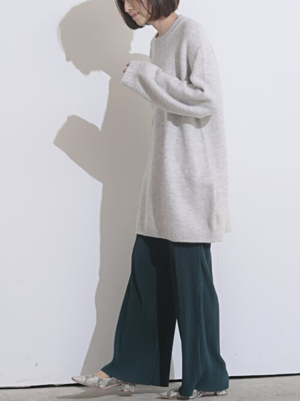 おうちスタイルもOKな楽ちんコーデ。 ゆったりオーバーサイズニットは人気のオートミールを着用。 パンツは濃いめのグリーンで大人っぽくしてみました。 テロンとしてて着やすいパンツです。 あと、セルフカットできるので好みの丈感で着られます。 長くすることはできませんが・・・