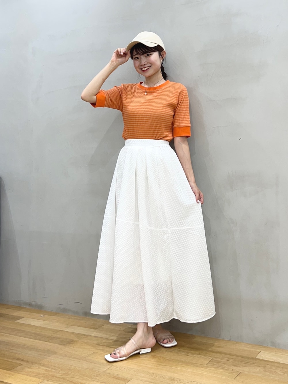 ざわわん(SENSE OF PLACE 吉祥寺パルコ)のスカート「エンボスタックフレアスカート」を使ったコーディネート