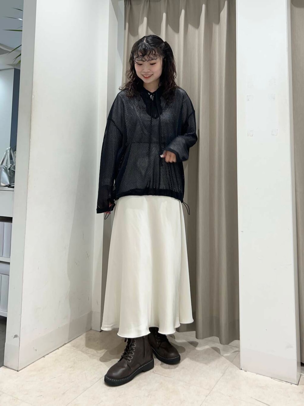 こんにちは🌞ざわわんです! メッシュの透け感が可愛いらしいトップス。 夏はキャミやタンクトップで肌をチラ見せするのがおすすめのスタイルです。 サテンスカートでカジュアルさを抑えめにしたのもポイント!162cm、Mサイズ着用してます