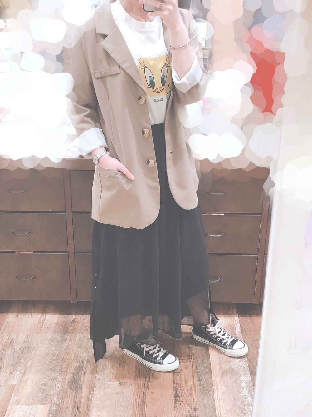 Darling BadyHARE¥9,350この画像から似たアイテムを検索できます17032お気に入り (8)320あおいさんへのコメントNO COMMENTコメントはスマートフォン用アプリからご利用できます着用アイテムDarling BadyDarling Badyテーラードジャケット (ベージュ系)テーラードジャケット探すZOZOTOWNで探す¥9,350HAREHAREスカート (ブラック系)スカートサイズ:FREE着用コーデ:29件探すZOZOTOWNで探すあおいのテーラードジャケットを使ったコーディネートコメントを表示2020.5.19着用ブランドHAREタグ#オトナカジュアル#きれいめカジュアル#Tシャツ#透け感#スニーカー#HAREモデル情報女性・159cm似ているアイテムHARE × スカートあおい@rr5q8 / 159cm / WOMEN0コーディネート0フォロワー注目のコーディネートアプリでもっと見るもっと見る