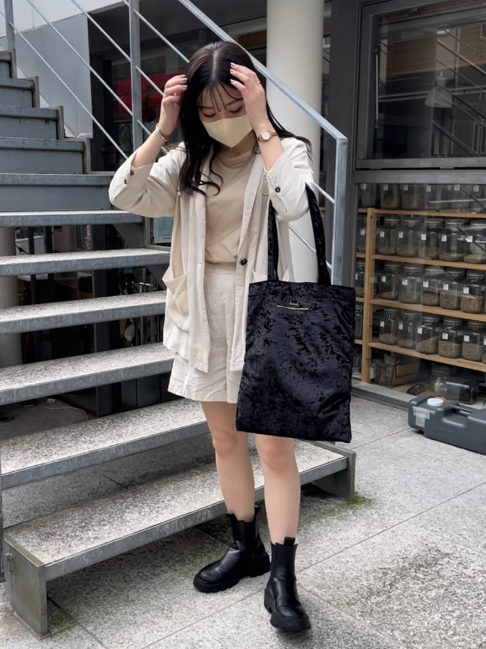 ririka( BIRTHDAY BAR 本部)のエコバッグ/サブバッグ「ベロアトート Mサイズ」を使ったコーディネート
