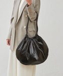 存在感のあるラウンド型のトートバッグ。 ハンドルも長めなので肩掛けがラクラク! たっぷり入るので、 お出かけにもお仕事にも◎ 参考書などの本も入ります📕 光沢のあるメタリック素材で大人っぽく見えます^^