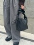 ハンドルを、 お好みでくしゅっとできるバッグ。 シンプルなコーデに合わせると アクセントが出るのでおすすめです🤍 シャーリングしない状態だと、 ショルダーバッグのように斜め掛けもできます◎