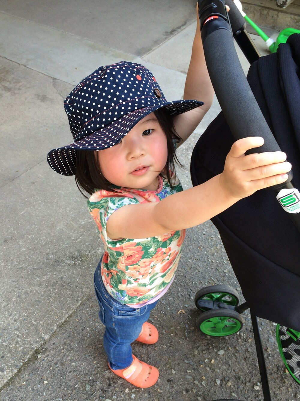 ベビーカー押してあげるまでに成長しました👍って誰も乗ってないんですが(笑) 最近暑い日が続いて、ちょっと日焼けしたかな(;^_^A