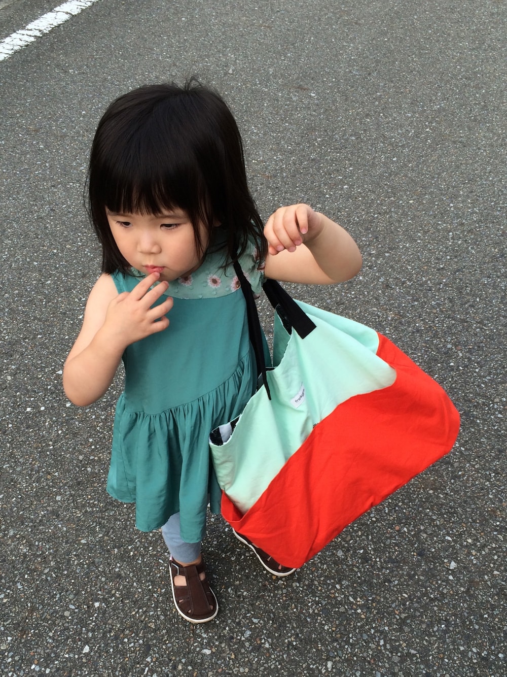 写真では見えにくいけど、ワンピ袖がアシンメトリーになってます♡ バッグは色使いが素敵。というかほぼバッグメイン(笑)