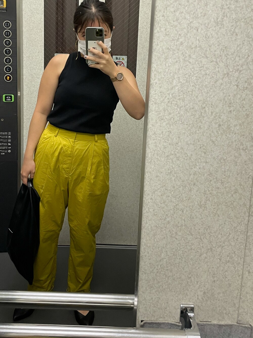 肌寒くなってきてますが、まだパキッとした色を身に付けたくて黄色を履いてます!💛