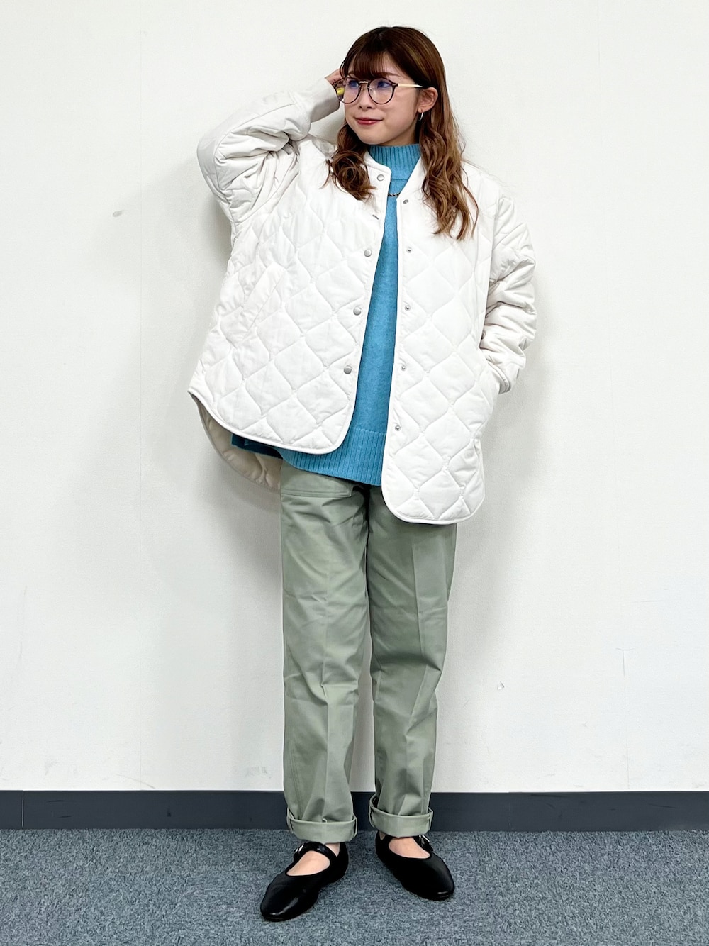 軽さと蓄熱保温機能があるキルトブルゾン。 ゆったり目のサイズ感なので、薄手のニットなどを合わせる時はワンサイズ下げても◎ どのボトムスにも合う丈なので、スカート×ニットで綺麗目コーデにも、デニム×スウェットでカジュアルコーデにもお使い頂けます! Sサイズ着用で、袖の長さはぴったりでした。