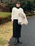 ◇コート 前後差のある丈で、ヒップもしっかりカバーしてくれるショートコート。 フードが取り外しできる2wayタイプなところもポイント◎ 軽量なので、持ち運びも着用も楽〜なアイテムです! Mサイズ着用で、手が隠れるくらいの袖丈でした。 ◇ワンピース ハイネックタイプで首元もしっかり暖かいワンピース。 やや薄手の生地なので、アウターを着てもモコモコせずに着用できます! ヒール無しでも着用できる丈感なので、小柄な方にもオススメです♡