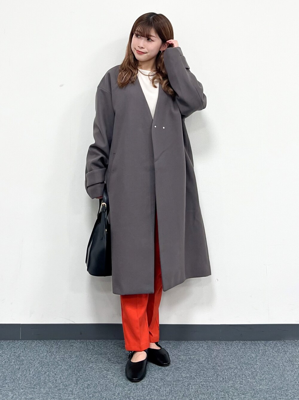 rrnn13のノーカラーコート「◆ウールライクノーカラーロングコート」を使ったコーディネート