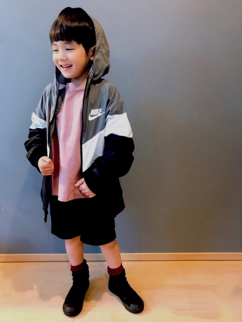 ご覧いただきありがとうございます😊 フォロー&♡してもらえたら嬉しいです❤️ JUNK STOREさんのカットソーはくすみピンクで男の子にも👍 お兄ちゃんに買った130が良いサイズ感☆笑