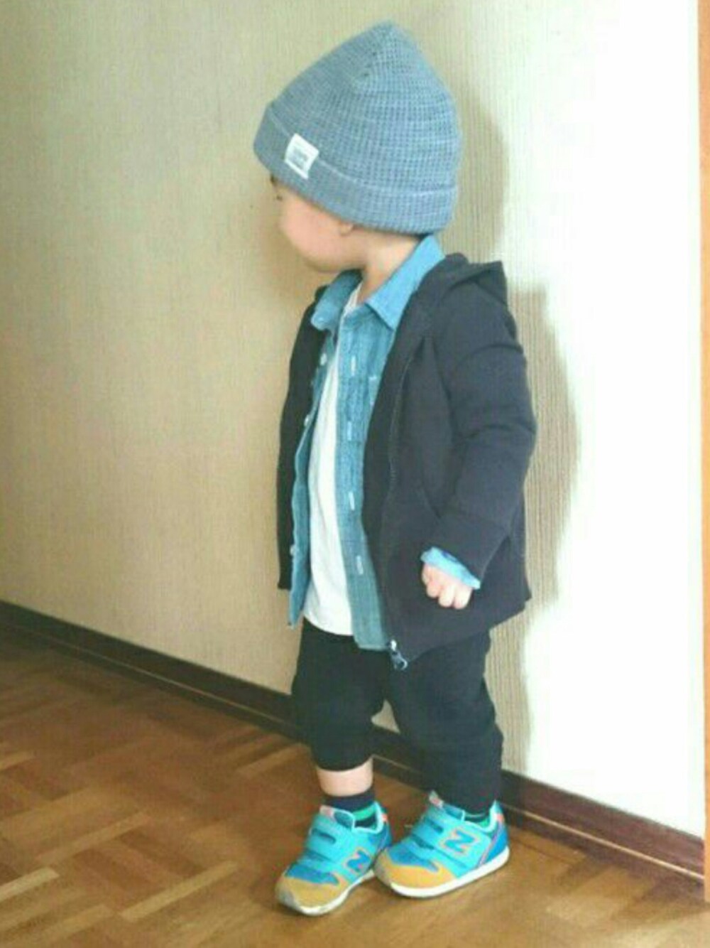 デニムシャツにパーカー羽織りました😀