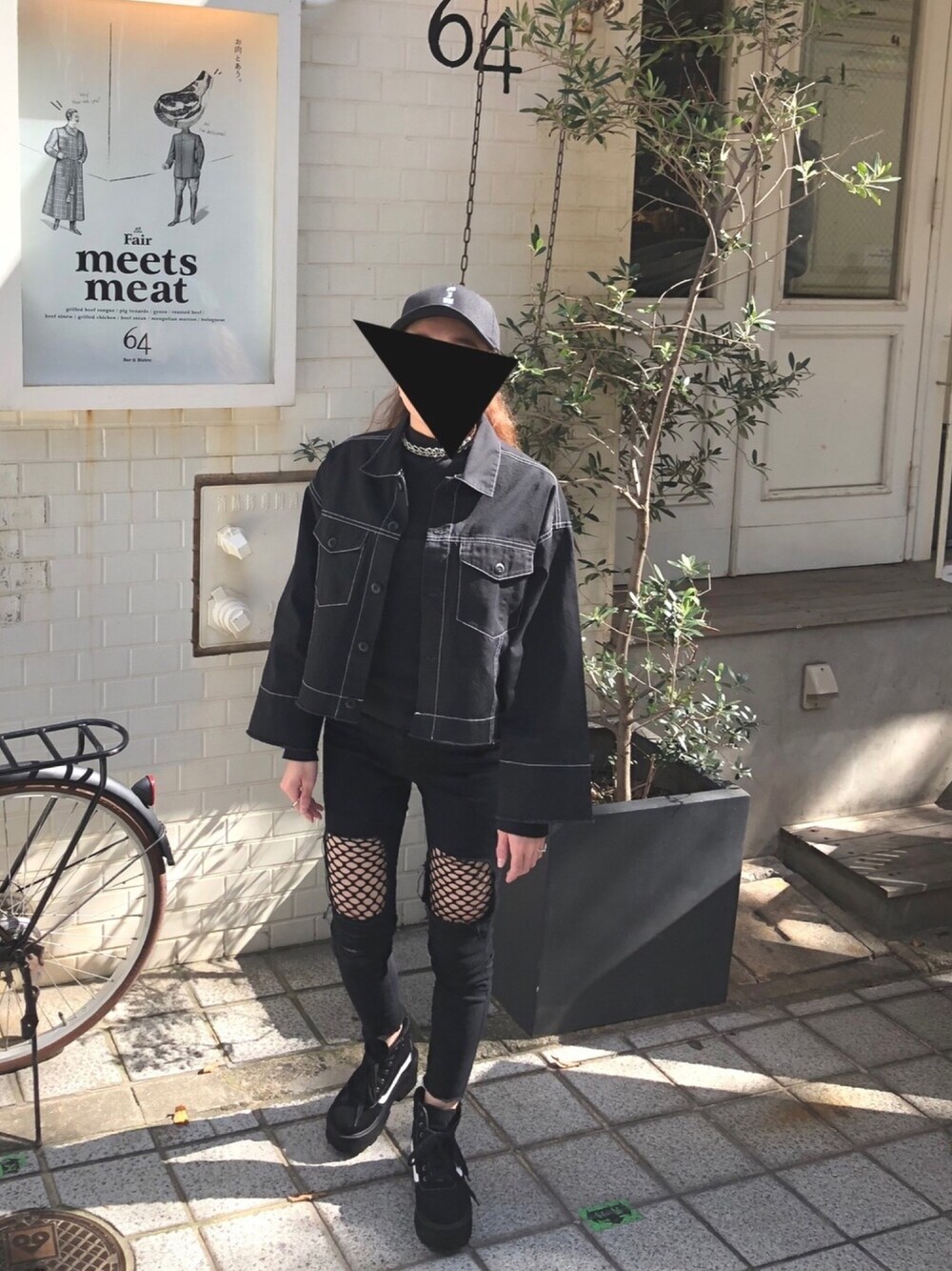 りこのデニムパンツ「クラッシュあみタイツストレッチパンツ」を使ったコーディネート