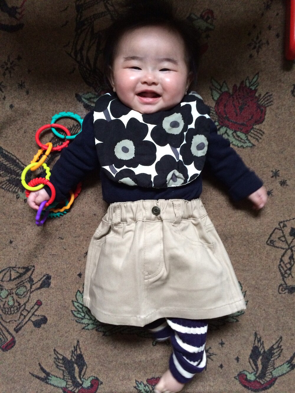 今日はシンプル女子スタイル♡ ロンパース▶︎▶︎babygap スカート▶︎▶︎レモール ボーダータイツ▶︎▶︎レモール スタイ▶︎▶︎マリメッコ ハンドメイド