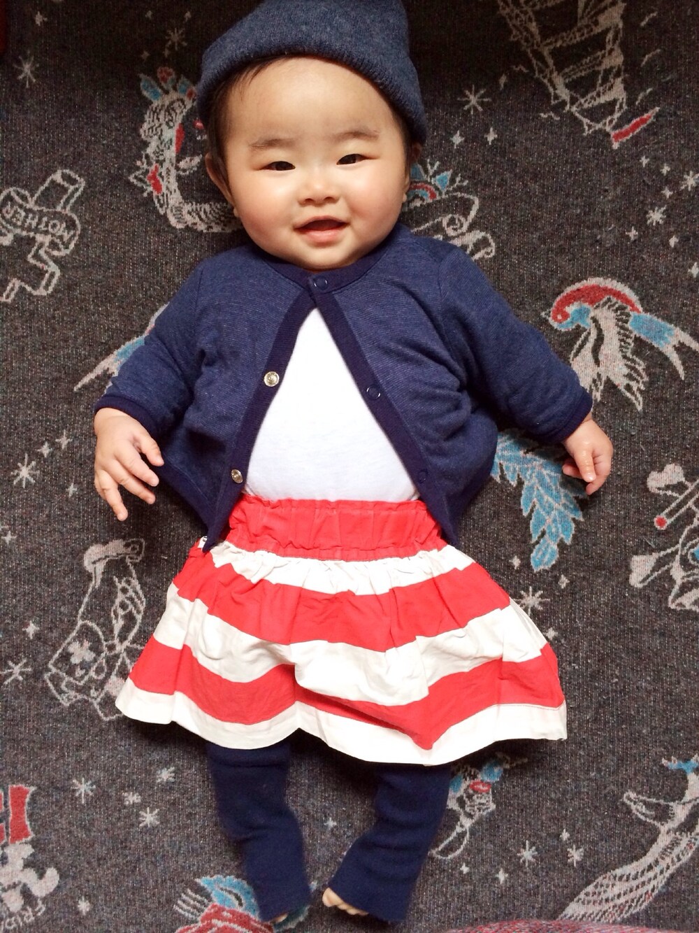 ネイビー×ボーダーで爽やかに♡ 赤ボーダーが差し色☻ ニット帽▶︎▶︎アメアパ カーディガン▶︎▶︎インポート 古着 ラグラン▶︎▶︎アメアパ スカート▶︎▶︎レモール レギンス▶︎▶︎プチバトー