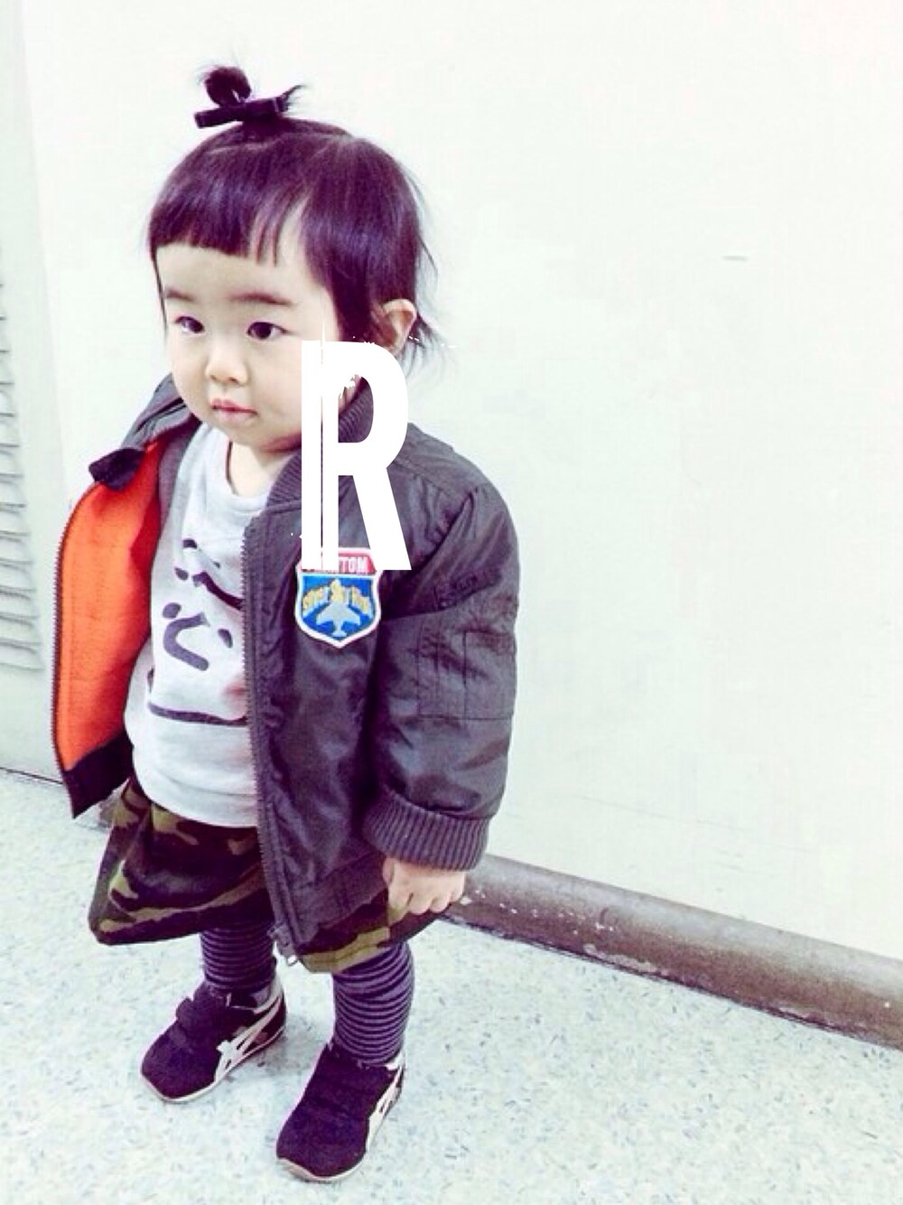 mamaお気に入りコーデ(ؓؒؒؑؑؖؔؓؒؐؐ⁼̴̀ωؘؙؖؕؔؓؒؑؐؕ⁼̴̀ ) アウター ー西松屋 スウェットー HANDMADE スカートーHANDMADE タイツー西松屋 スニーカー ーasics