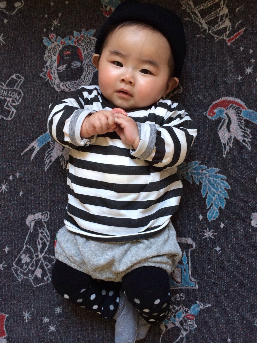 母娘でボーダーおそろコーデᵋ̈⃝͚ ニット帽▶︎▶︎アメアパ ロンT▶︎▶︎レモール ブルマ▶︎▶︎レモール タイツ▶︎▶︎西松屋 靴下▶︎▶︎西松屋