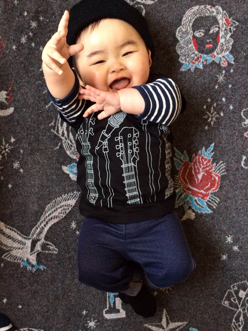 ROCK女子な日✯ ✯ ✯ Tシャツ▶︎▶︎西松屋 ロンパース▶︎▶︎babyGAP レギンス▶︎▶︎カーターズ ニット帽▶︎▶︎??