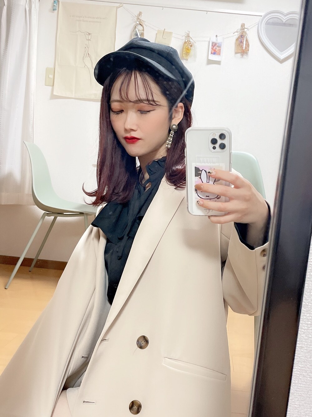 ベージュ系のジャケット/アウターを着用したレディースの春コーディネートの1枚目の写真