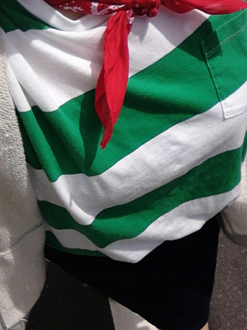緑のボーダーとネイビーのタイトスカート! トップスは古着屋さんで500円✨