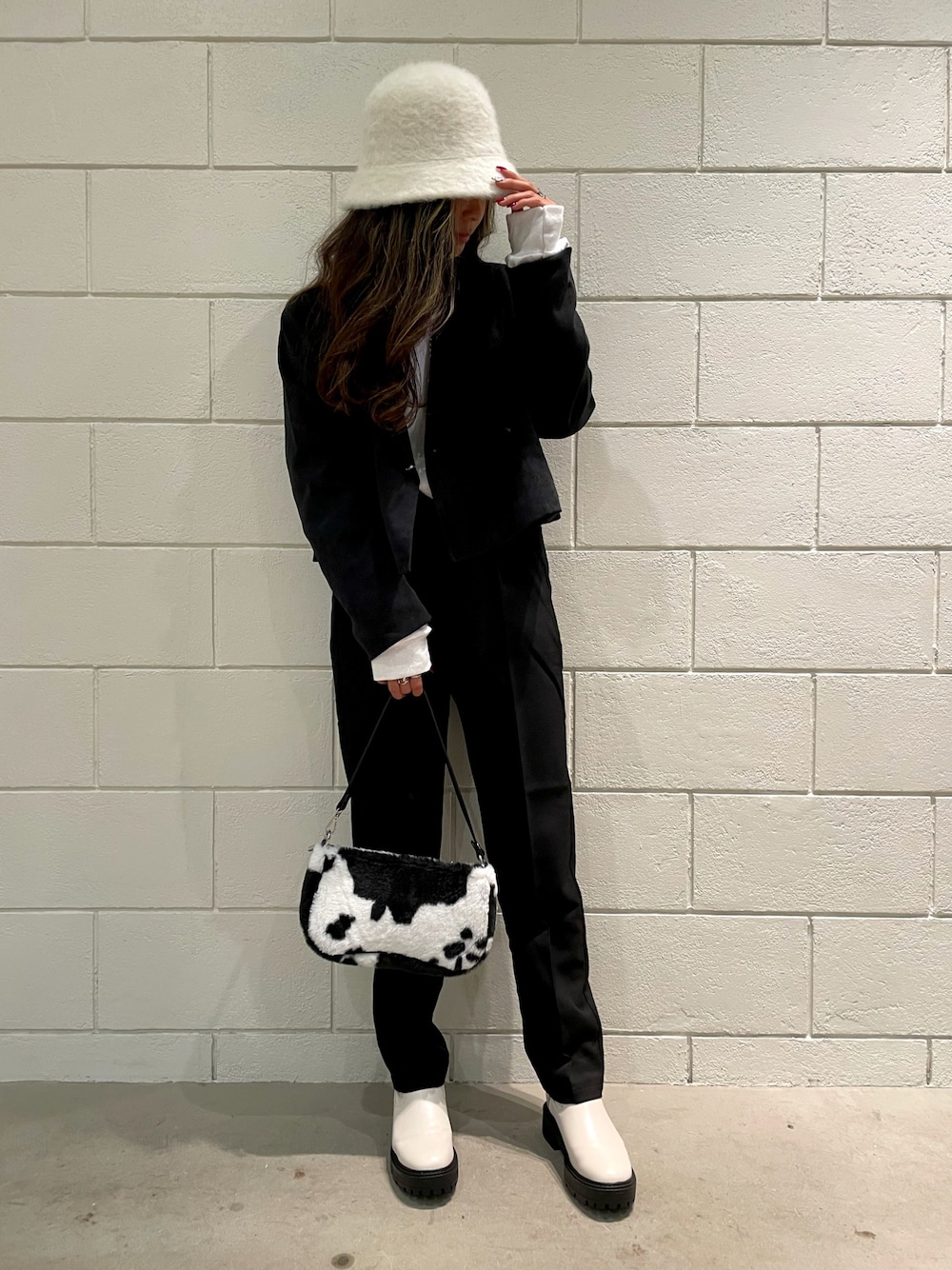ショート丈のジャケット着ると スタイル良く見える😙😙✨ モノトーンで合わせた時は カウ柄かゼブラ柄で合わせがち。笑
