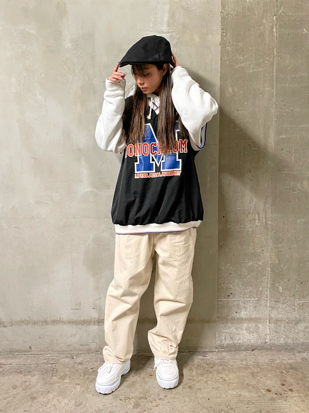 初ハンチング🤟🏾 ハンチングの後ろかぶりも好きです🚶🏿♂️ ベストにパーカーは安定にかわいい🖤