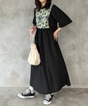 ブラック系のワンピースを着用したレディースの夏コーディネートの1枚目の写真