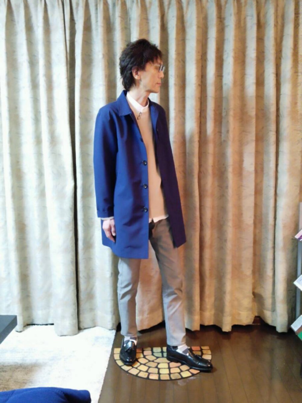 コートコーデの回。少しだけ黒が入ったネイビーのステンカラーコート。ジャーナルスタンダードのこのコートも付き合いまして1年が経ちます。今でもラインアップされているので支持が広いのでしょう。店員さんの雰囲気がとても良いので気持ち良く買ってしまいましたが、なかなかの良品で重宝しています。 一年使用した感想・・・・・・・・・ LASKAと呼ばれる対磨耗新素材ファブリックの耐久性は良い。まだ表面は綺麗。 ゴワついていますが、カタチは崩れにくく表面は滑らか。 ストレスなくサラッと羽織れてジャケットもインナーで着ぶくれ感なしでガシガシ使える。今後も長く使用予定… 製品の質感はユナイテッドTOKYOを1ランクダウンした感覚。 秋から春にかけて長く使用可能ですが、真冬はチェスターにタッチ交代です。 ・・・・・・・・・・・・・・・・・ セール掛かっていましたら、買いだと思います(笑)。