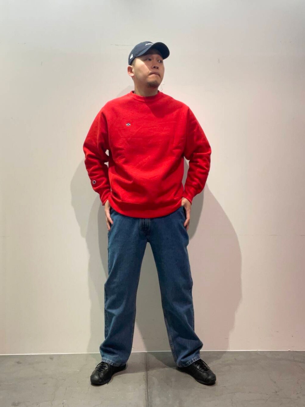 今回は、別注championスウェットを使用してコーディネートを組んでみました! 赤いアイテムはコーディネートを組むのが難しいと思っていましたが、こちらのスウェットは随所にかわいい刺繍が施されているため1枚着ればすぐにサマになるアイテムです! デニムと合わせればアメカジっぽくもなりオススメです!