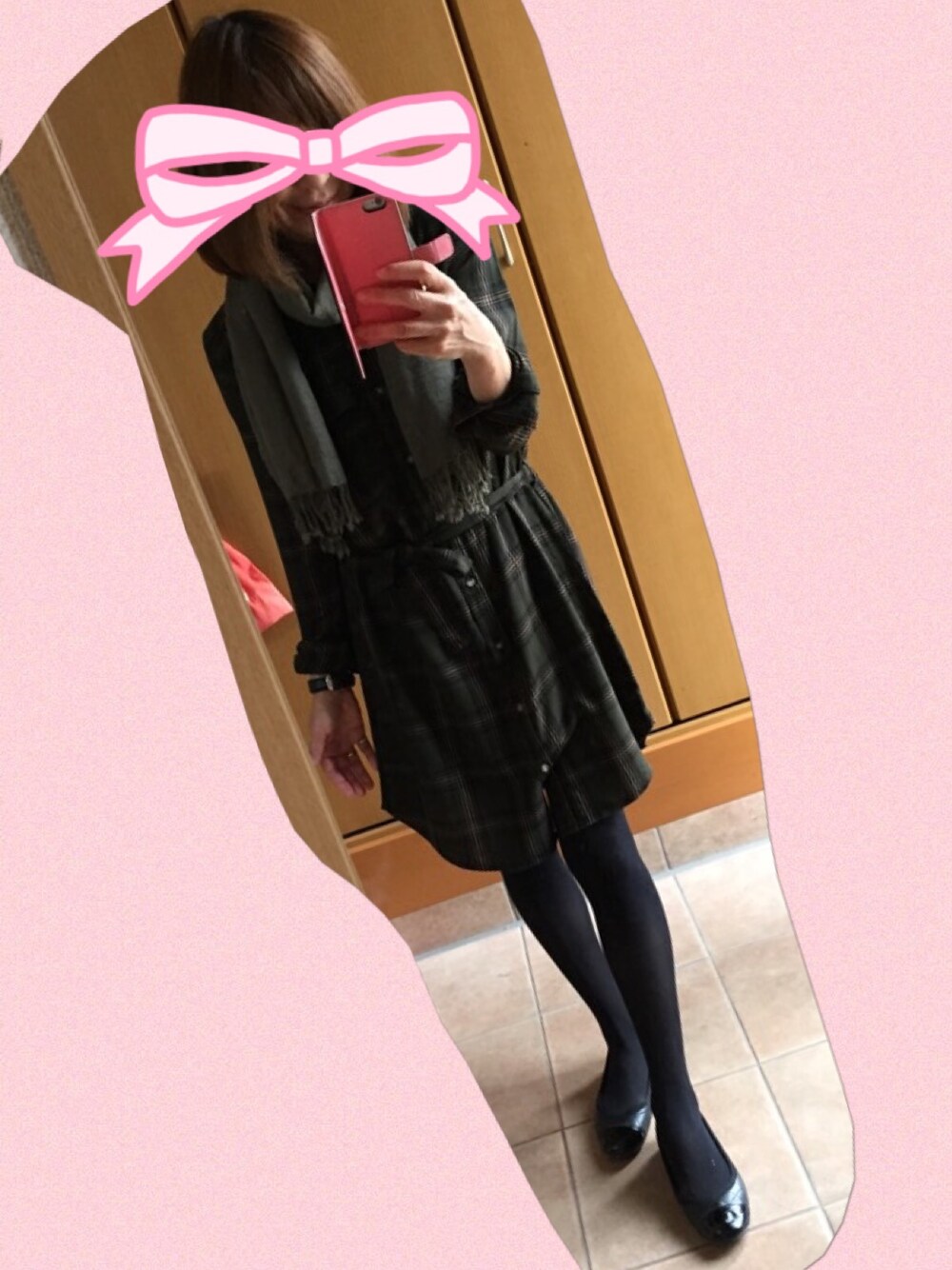 夏に買った、シャツワンピ、H&Mの32ですが、以外と大きめ、 秋らしくて、いい感じです。 マフラーは、もうずいぶん前に買った、無印ので、woolで小さめ、さっと使えます^_^ 今日はバレーシューズで^_^