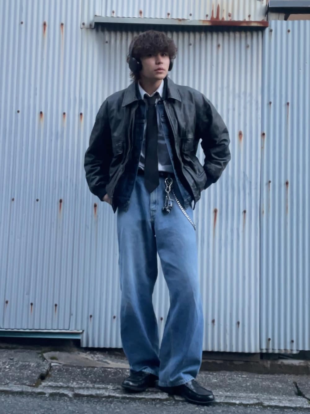 青と黒でまとめたレイヤードコーデ🎽 インスタ ▶︎ @__re_time__