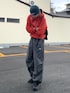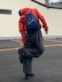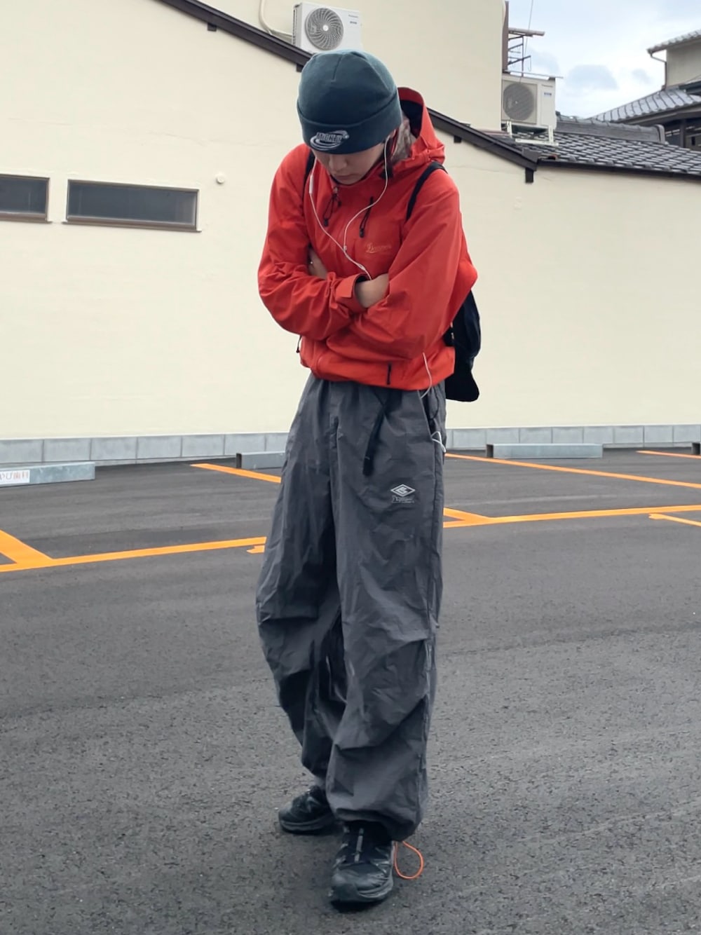 このシンプルでまとまった感じがすきです🍊 パンツ裾のドローコードがオレンジなのめちゃGood。