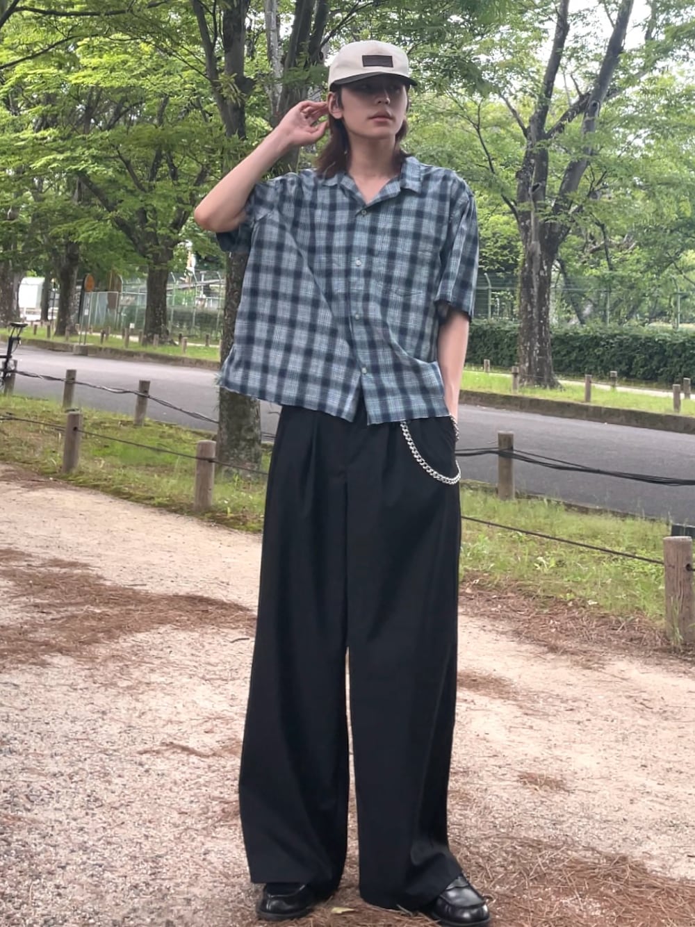 夏でもさらっと着れるオンブレチェックシャツでちょい品のあるアメカジスタイル🗽 スラックス、ローファーとの相性◎ Inst ▶︎ __re_time__