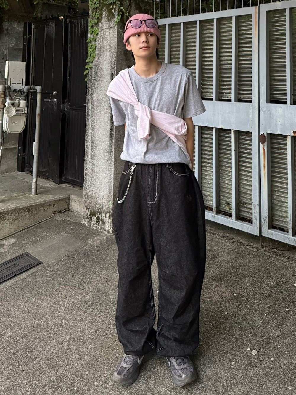 ピンクとモノトーンで組んだたすき掛けコーデ ピンク×グレーが良すぎてハマりそう🫦