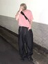 柔らかい可愛げのあるピンクTに無骨なリジットデニムを合わせたストリートコーデ カーキとくすんだピンクの相性◎