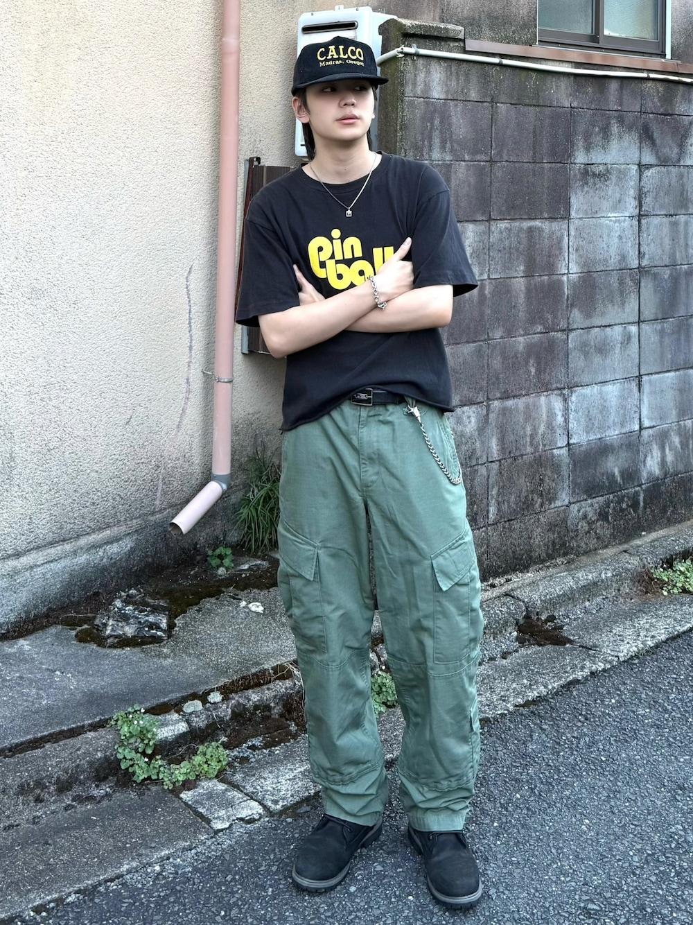 無骨さを意識した男らしいシンプルなアメカジストリートコーデ ロゴTで遊びを入れつつ、黒ティンバーで足元はしっかり重厚感を⚒️