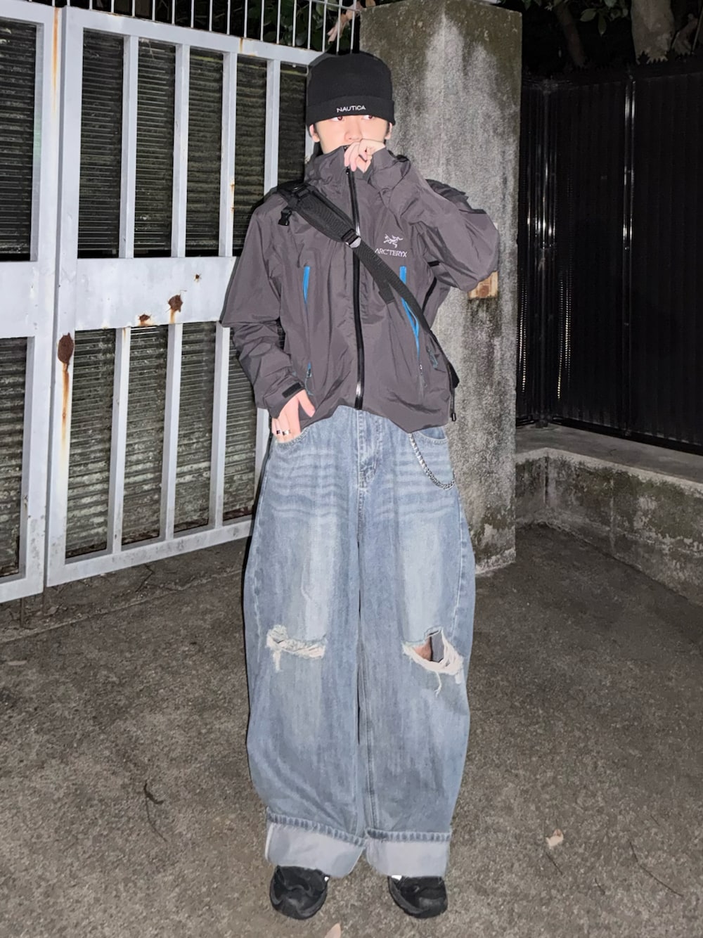 Arc’teryxのシェルジャケットにバギーデニムを合わせたゴープコアスタイル ゴープコアはデニムと相性良いのでおすすめ✨