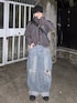 renのデニムパンツ「7D36 クラッシュ ダメージワイドデニム ルーズデニム カーブパンツ」を使ったコーディネート