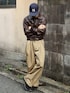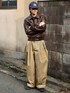 ブラウンの短丈レザージャケットを使ったストリートコーデ 短丈レザー×ワイドチノでスタイルアップ◎ ネイビーとブラウンの相性めちゃ良いです レザー×デニムの王道から少し差をつけたい人にチノパン合わせおおすめ🍂