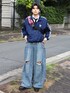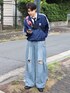 renのデニムパンツ「7D36 クラッシュ ダメージワイドデニム ルーズデニム」を使ったコーディネート