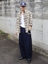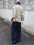 古着のチェックのネルシャツを使ったアメカジストリートコーデ キャップとパンツの色をリンクさせて◎ イエロー味強めのベージュの古着ネルシャツが秋っぽくてかわいすぎる🐝