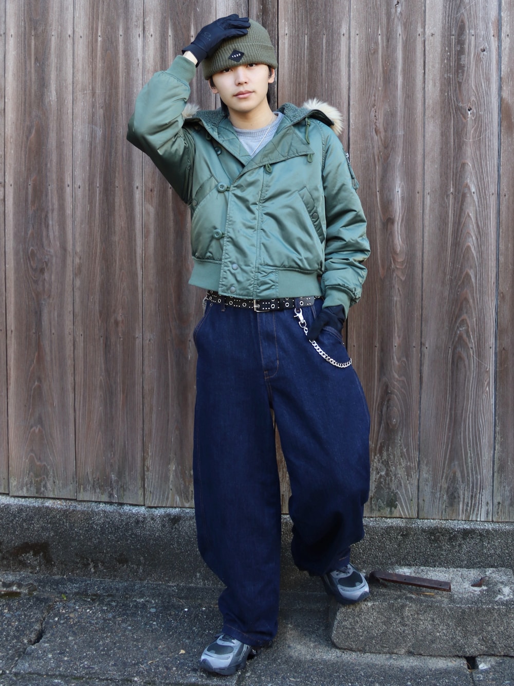 American eaglesのN2Bジャケットを使ったミリタリーストリートコーデ N2Bはかなり暖かいから冬マスト◎ 自転車よく乗るからオークリーの手袋愛用してるけどファッションでも使えてお気に入り🧤