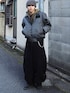 フライトジャケットを使ったミリタリー×ストリートコーデ 無彩色ベースの中にミリタリー感ある色のジップパーカーをレイヤード アウターの所々のオレンジが効いてる◎ フライトジャケットは黒、カーキ、ネイビーが定番だけどグレーもめちゃかっこいい🐺