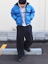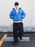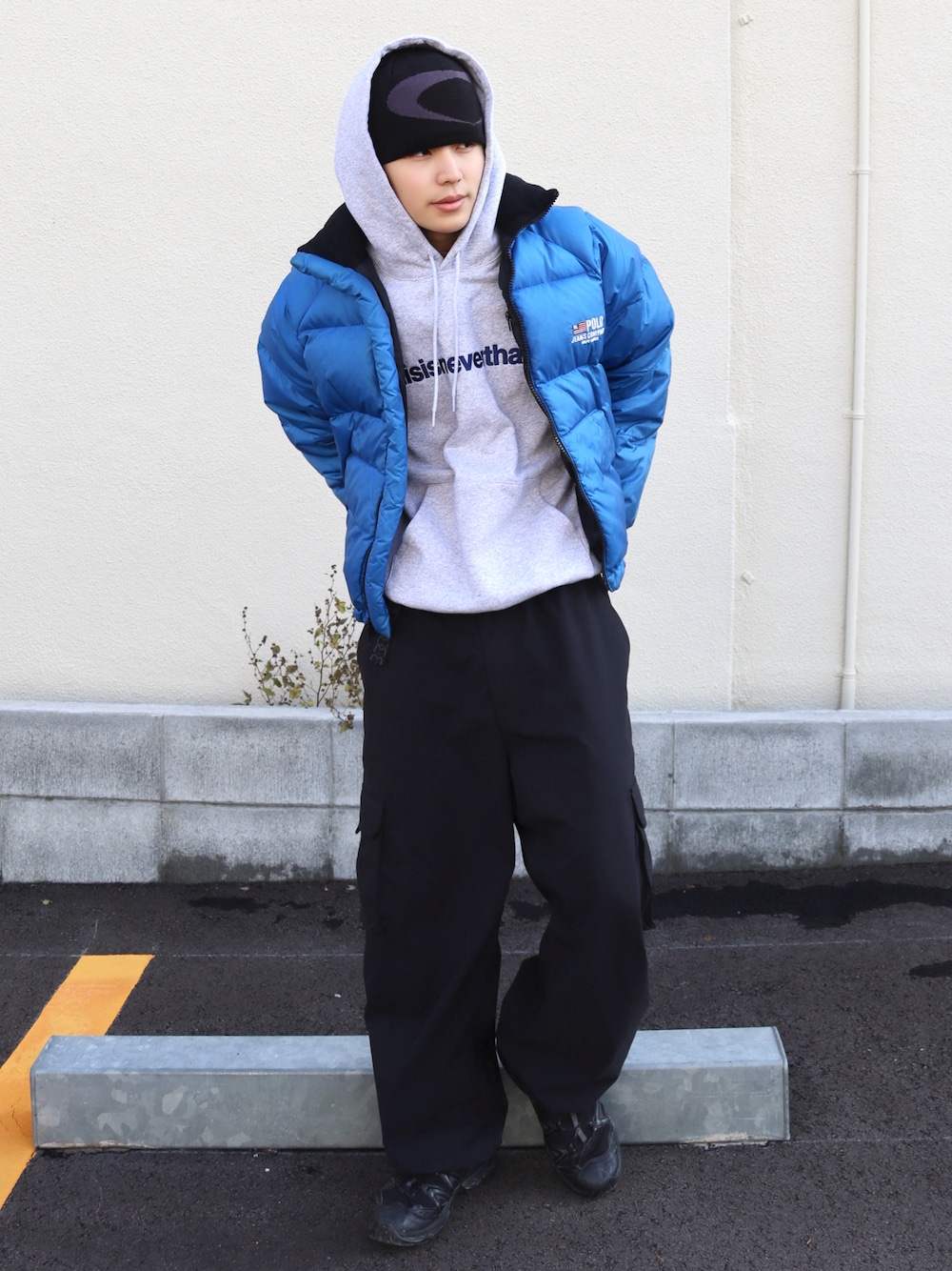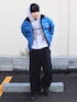 古着のPoloのダウンを使ったストリートコーデ ストリート好きに刺さりそうな発色の良いダウンがめちゃかっこいい◎ イルミネーション等で映えそうな冬にピッタリなコーデやと思います✨