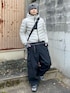 GAPのオフホワイトのダウンを使った韓国ストリートコーデ 全体をモノトーンに&グレー多めにして韓国っぽく◎ ミシュランマンにならないためにサイズはオーバー過ぎないのがおすすめです🍦