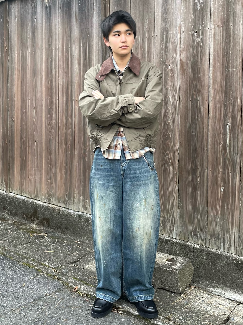 ワークテイストを軸にした大人っぽいアメカジコーデ 全身新品でもサイズ感と色味で古着のような雰囲気に◎ 足元は黒の革靴でカジュアル過ぎず大人っぽく🐾