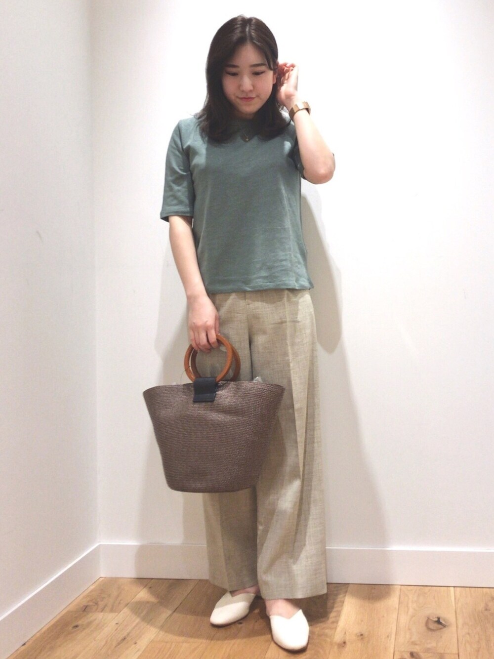amoのTシャツ/カットソー「コットンリネンクルーネックカットソー」を使ったコーディネート