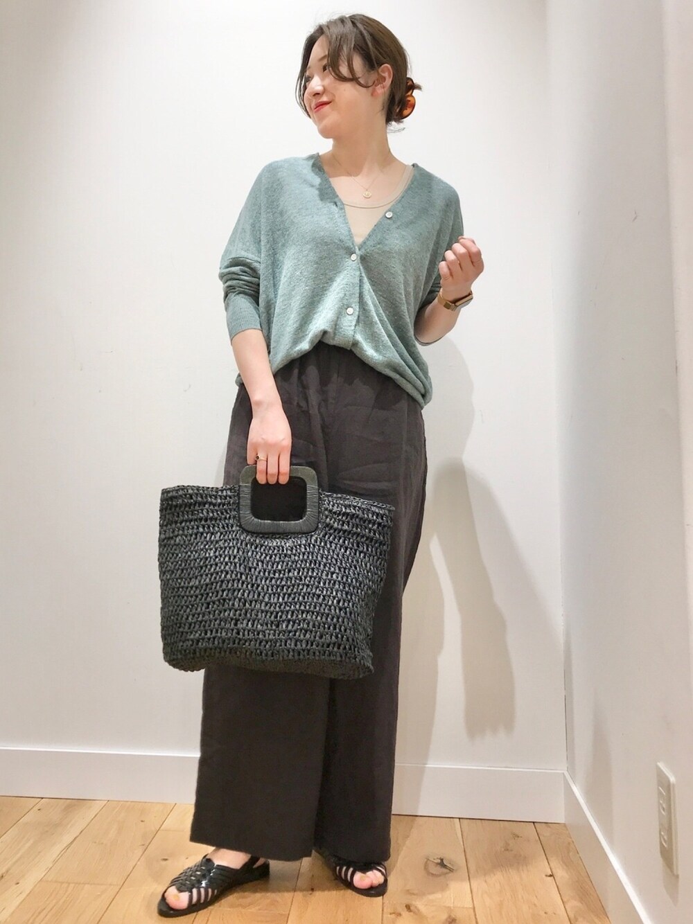カーディガンをトップスとして着るのも可愛い😍!! リネンのパンツは通気性・速乾性が良く、肌触りも サラッとしているので汗をかく真夏にも使えて オススメのアイテムです♡ Instagram @amoams_