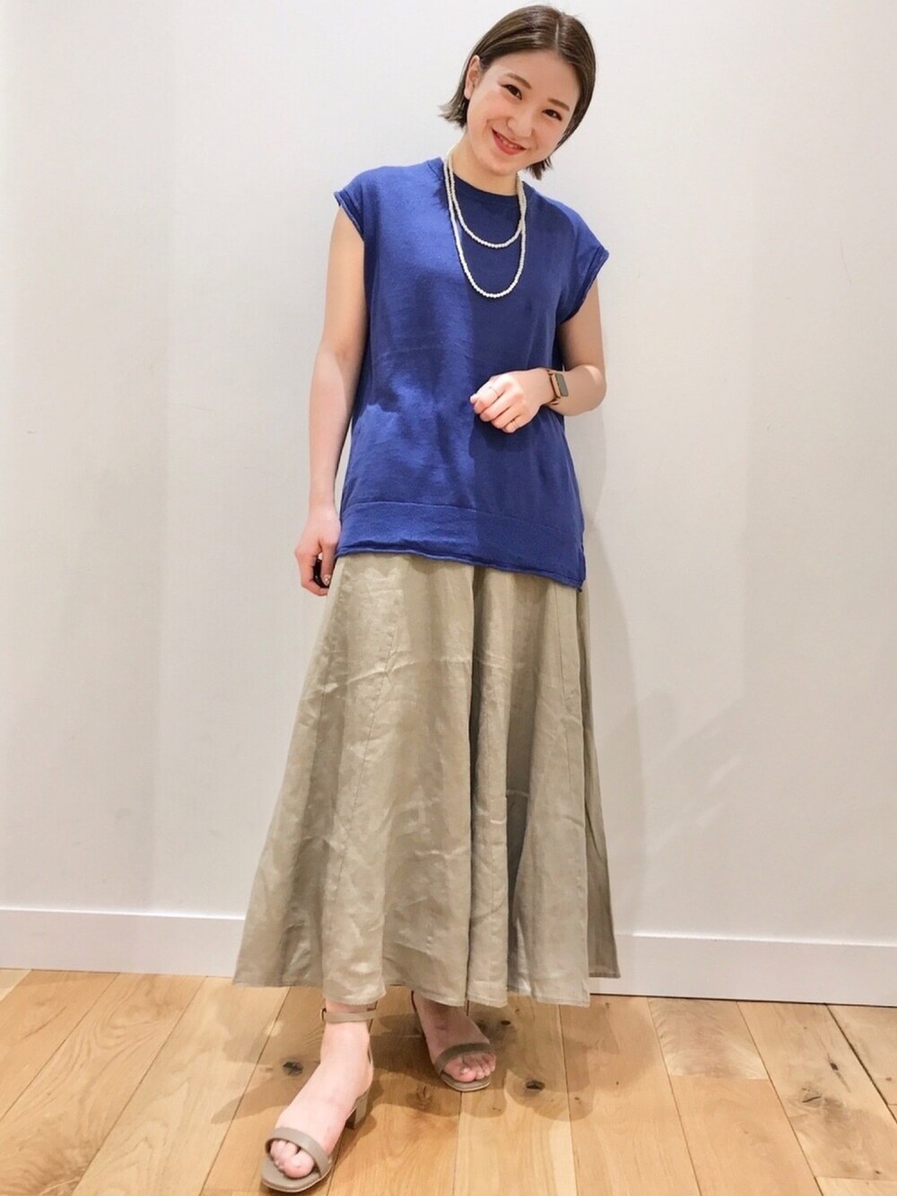. . ブルーの色味が映える綺麗目スタイル🐟🤍 . . ノースリーブのアイテムでもフレンチスリーブ は肩周りが隠れるのでありがたい🙏✨ . . Instagram @amoams_ . .